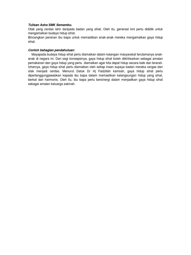 Cth Karangan Gaya Hidup Sihat 1