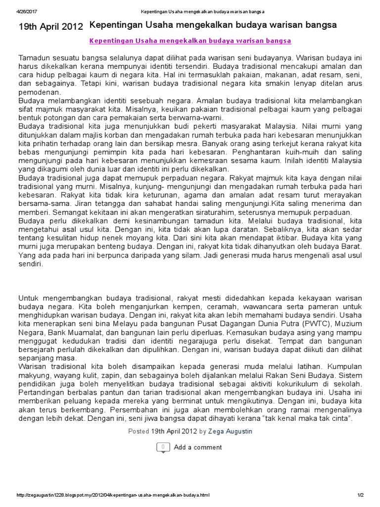 Kepentingan Mengekalkan Budaya Warisan Bangsa Pdf